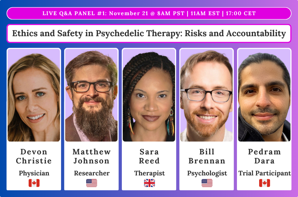 Psychedelics can heal, but they can also harm. Join Devon Christie, MD, Matthew Johnson, PhD, Sara Reed, MS, Bill Brennan, PhD, and Pedram Dara for a candid discussion on the ethical blind spots, safety risks, and accountability gaps emerging as the field expands. Discover what it will take to make psychedelic therapy safer, more transparent, and truly patient-centered.