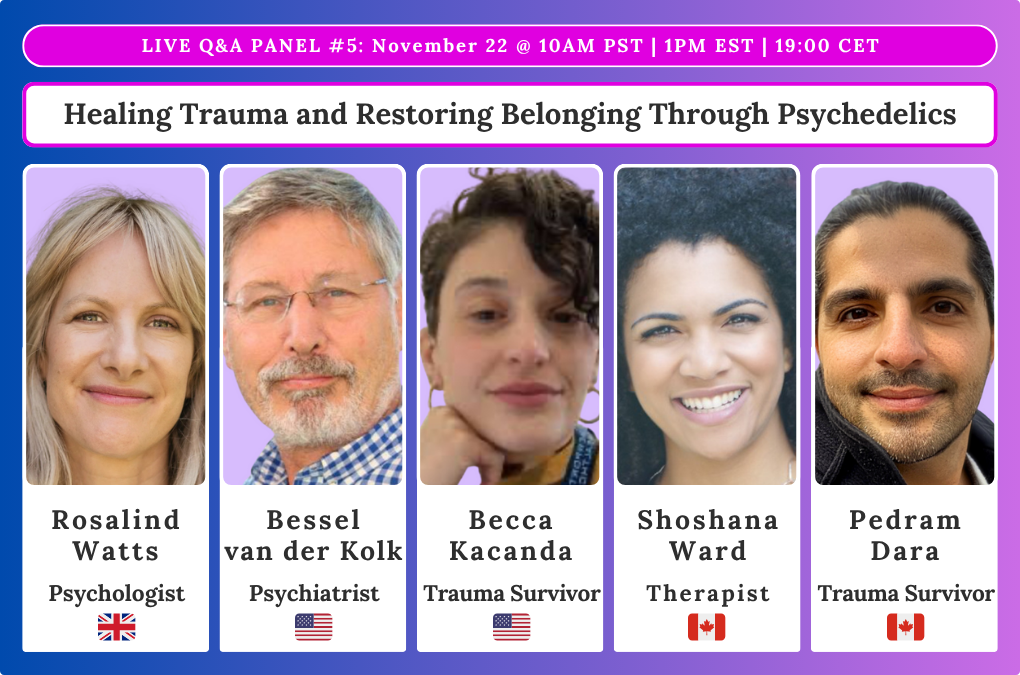 Trauma severs connection. Healing restores it. Join Rosalind Watts, PhD, Bessel van der Kolk, MD, Becca Kacanda, M.S., Shoshana Ward, RTC, and Pedram Dara to explore how psychedelic experiences may help trauma survivors rebuild safety, trust, and belonging and the challenges of sustaining that healing over time.