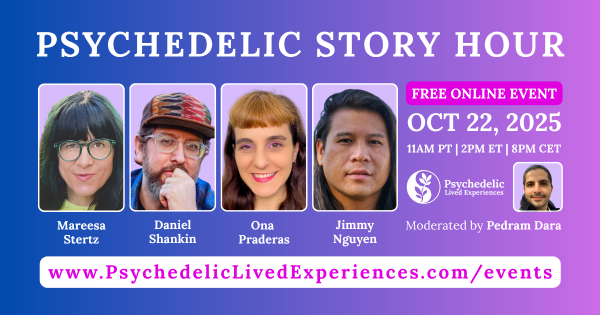 Join us live for the next episode of Psychedelic Story Hour with Mareesa Stertz, Daniel Shankin, Ona Praderas, and Jimmy Nguyen as they explore how integration extends beyond therapy.